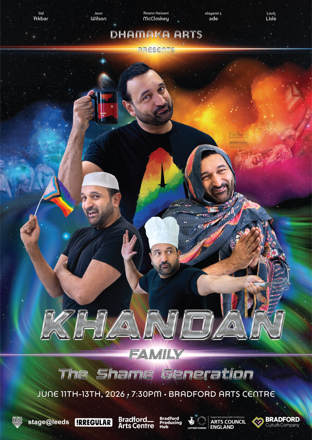 Huge love and gratitude to my crew, to Bradford Arts Centre for backing this work and championing stories like this—queer, intersectional, Northern, and rooted in South Asian Muslim experience—and to Arts Council England for funding this show and making it possible to create queer magic and return to a deep, necessary exploration of queer space.